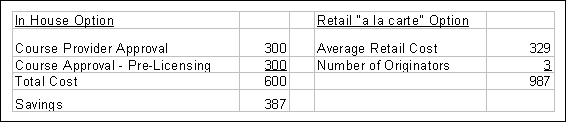 What is clear from this calculation is that, if you have at least 11 originators, it makes sense to at least consider an in-house course.
